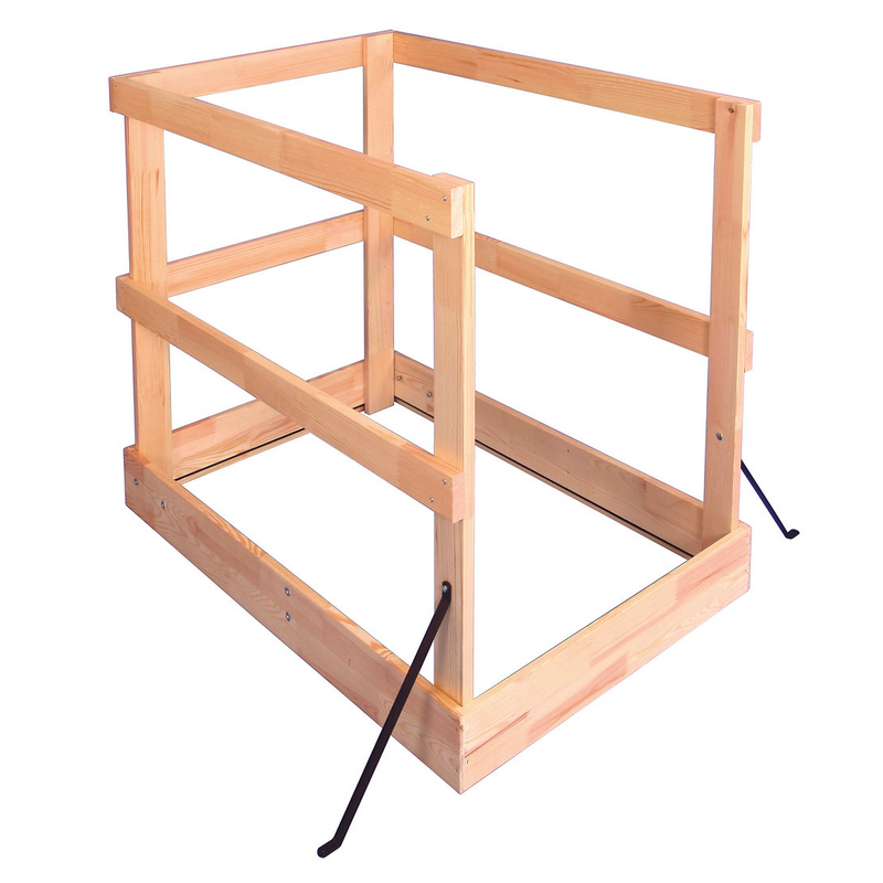 The balustrade is made of wood with metal supports. Increases safety by protecting against falling into the opening of the stairs when the stairs are open. It is also easy to install.